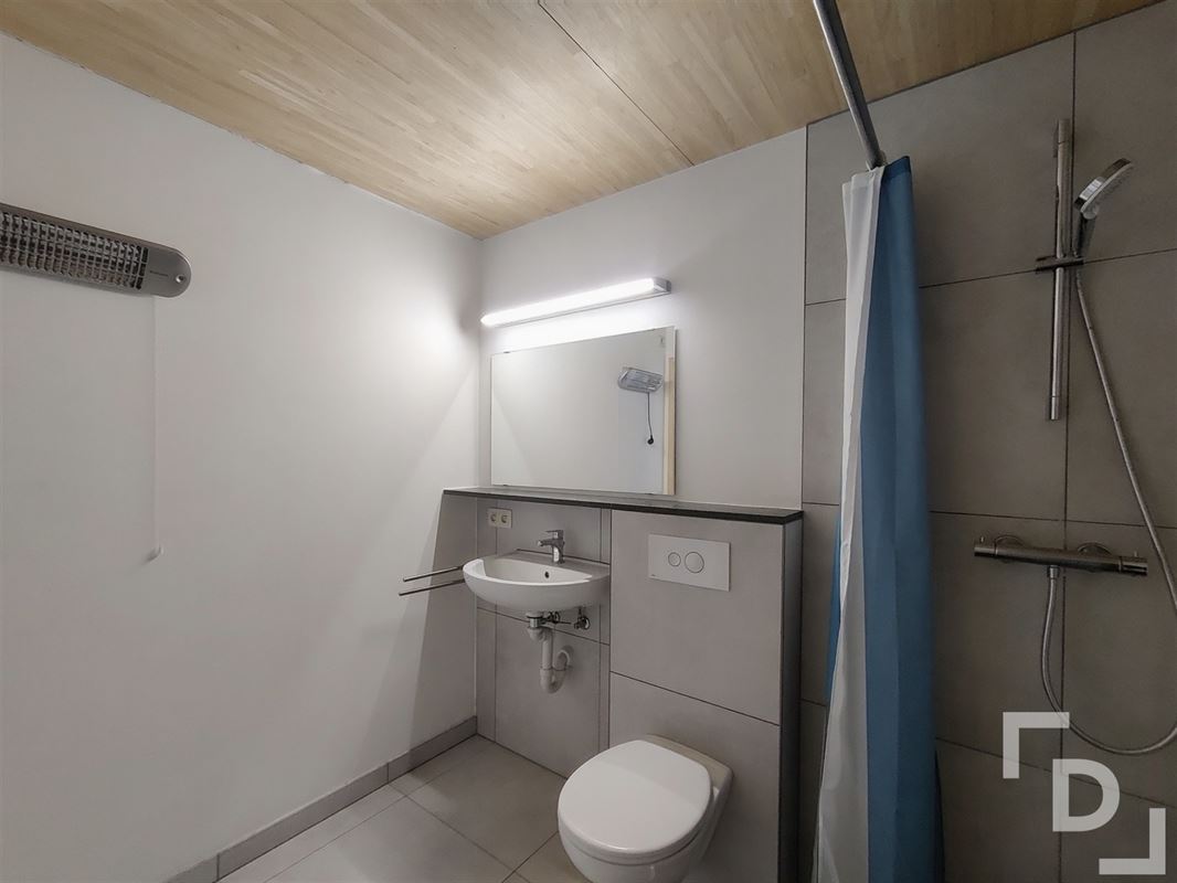 In de gezellige dorpskern van Westvleteren bevindt zich deze unieke herbestemming van een voormalig schoolgebouw. De residentie 't Schoole bestaat uit 5 woonunits met gedeelde openbare tuin en garageboxen.De lichtrijke woning heeft een open-plan. De woonkamer vormt een geheel met de open keuken. Deze is uitgerust met een keramische kookplaat, heteluchtoven en koelkast met vriesvak. Aansluitend is er de ruime keukenberging voorzien van aansluitingen voor diepvries, wasmachine en droogkast. De badkamer is voorzien van een wastafel, toilet, inloopdouche en elektrische verwarming. Verder zijn er nog 2 slaapkamers aanwezig (363*322 & 363*210) waarvan de kleinste over een extra mezzanine beschikt. Verder zijn er nog handige opbergruimtes voorzien doorheen de woning.
