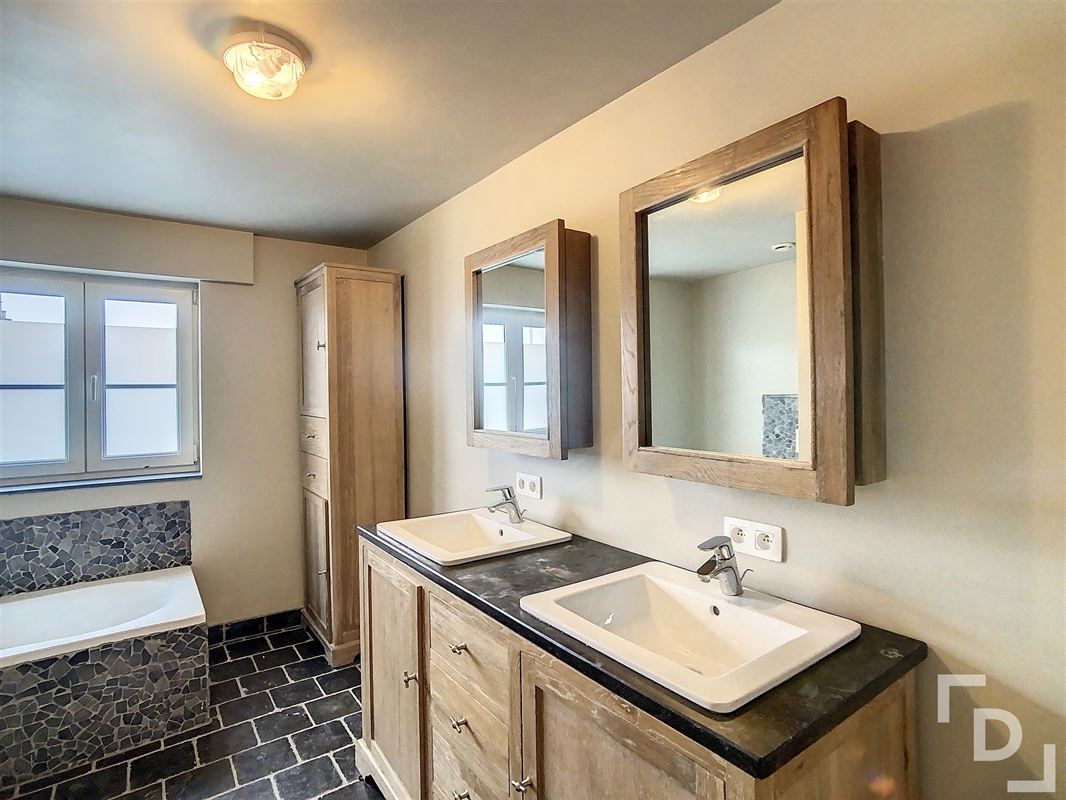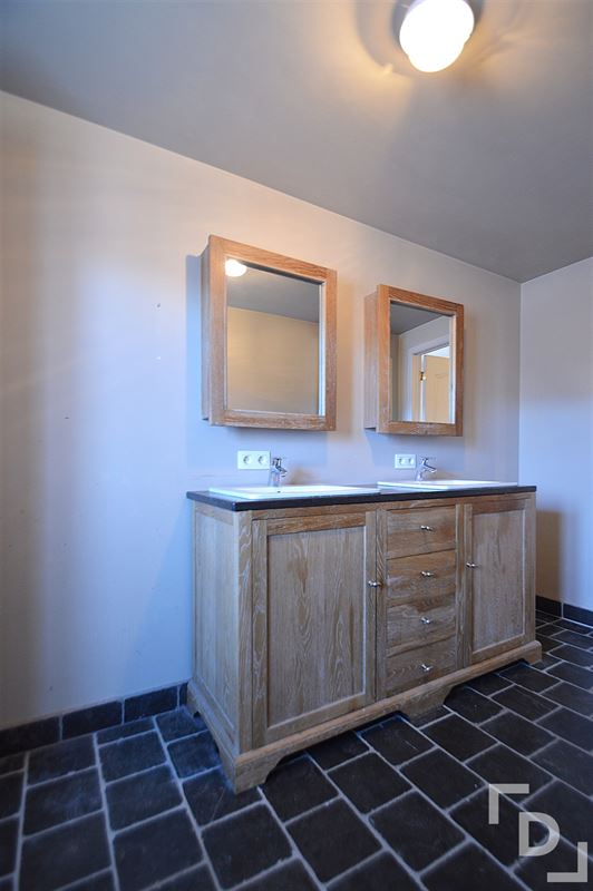 Vanuit de inkomhal heb je toegang tot de bovenverdieping. Hier zijn drie ruime slaapkamers (375x357 - 381x277 - 390x252) en een ingerichte badkamer. De badkamer bestaat uit een dubbele wastafel, ligbad en toilet. Op de nachthal vinden we ook een luik naar de ruime zolder.