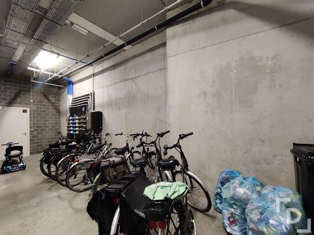 Via de elektrische garagepoort heb je toegang tot de parkeerplaats, een fietsenstalling en een gezamenlijk berging voor de vuilnisbakken. De gemeenschappelijke kosten zijn €60/maand voorschot.