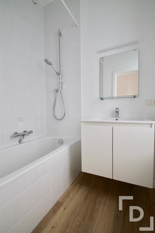 Verder beschikt het appartement over een slaapruimte met ingemaakte kasten. Aansluitend bevindt zich de badkamer, uitgerust met een wastafel en een ligbad met douchemogelijkheid. Daarnaast is er een private kelderberging voorzien.