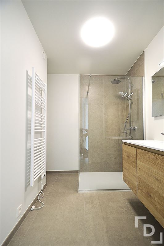 V+4: Centrale hal - leefruimte met open keuken voorzien van combi-microgolf, vaatwas, inductiekookplaat en frigo - apart toilet - technische ruimte - badkamer voorzien van inloopdouche, wastafel en handdoekendroogrek - 2 slaapkamers met verzicht - terras