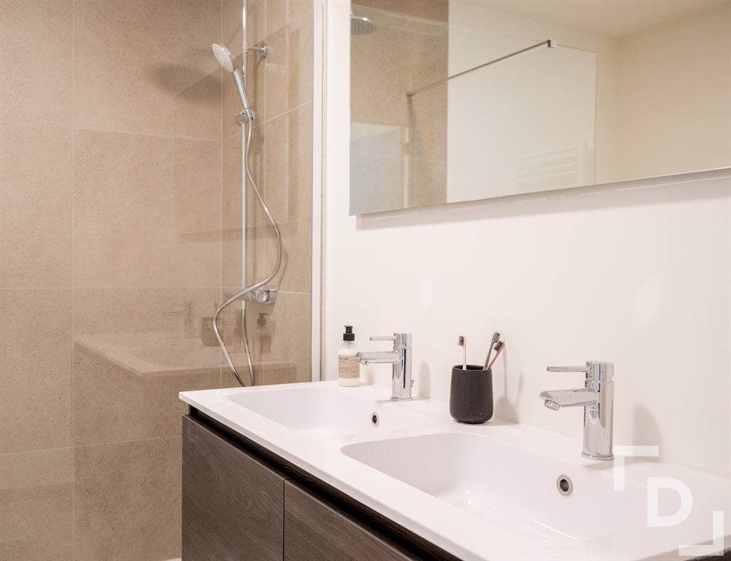 V+3: Centrale hal - leefruimte met open keuken voorzien van combi-microgolf, vaatwas, inductiekookplaat en frigo - keukenberging - apart toilet - badkamer voorzien van inloopdouche, wastafel en handdoekendroogrek - 2 slaapkamers met verzicht - terras