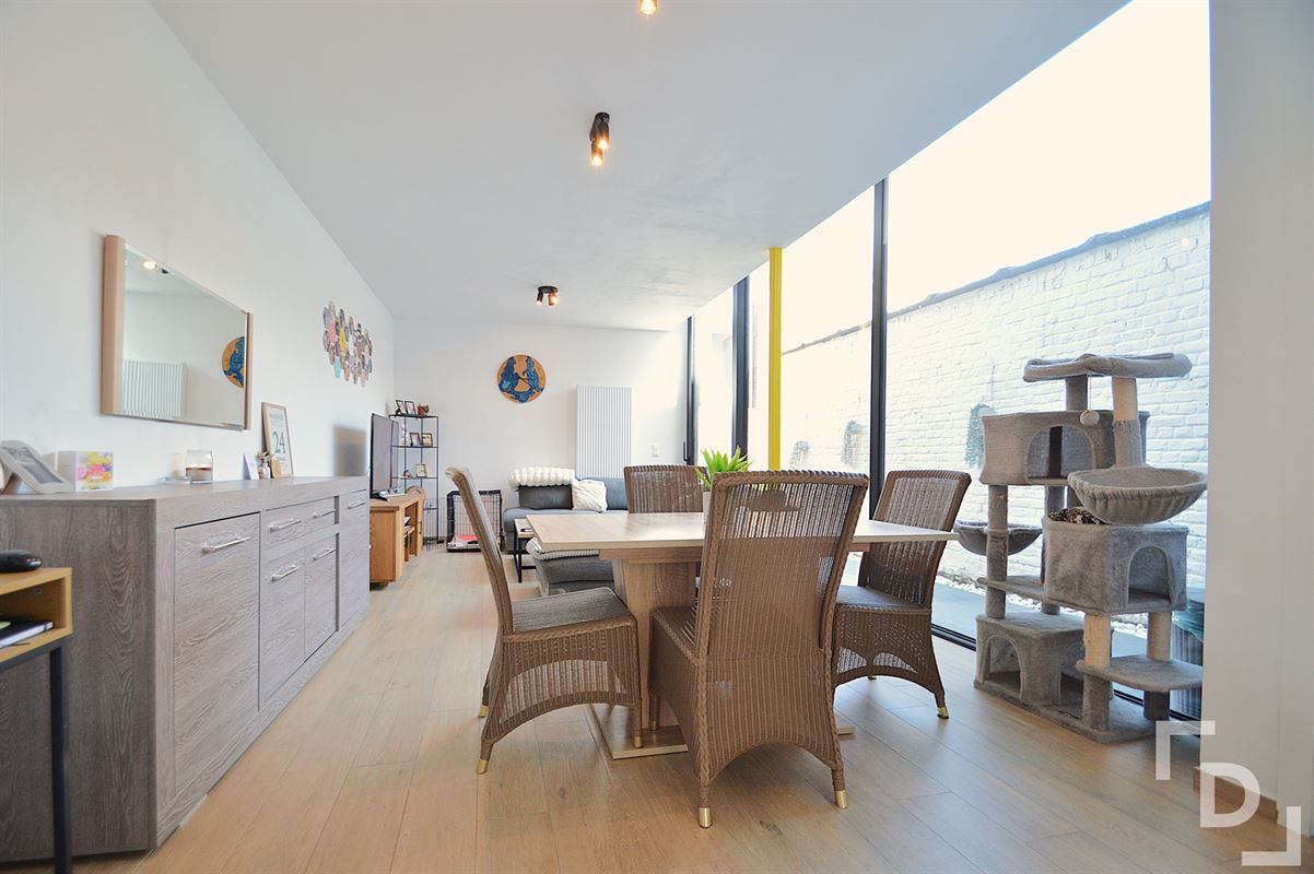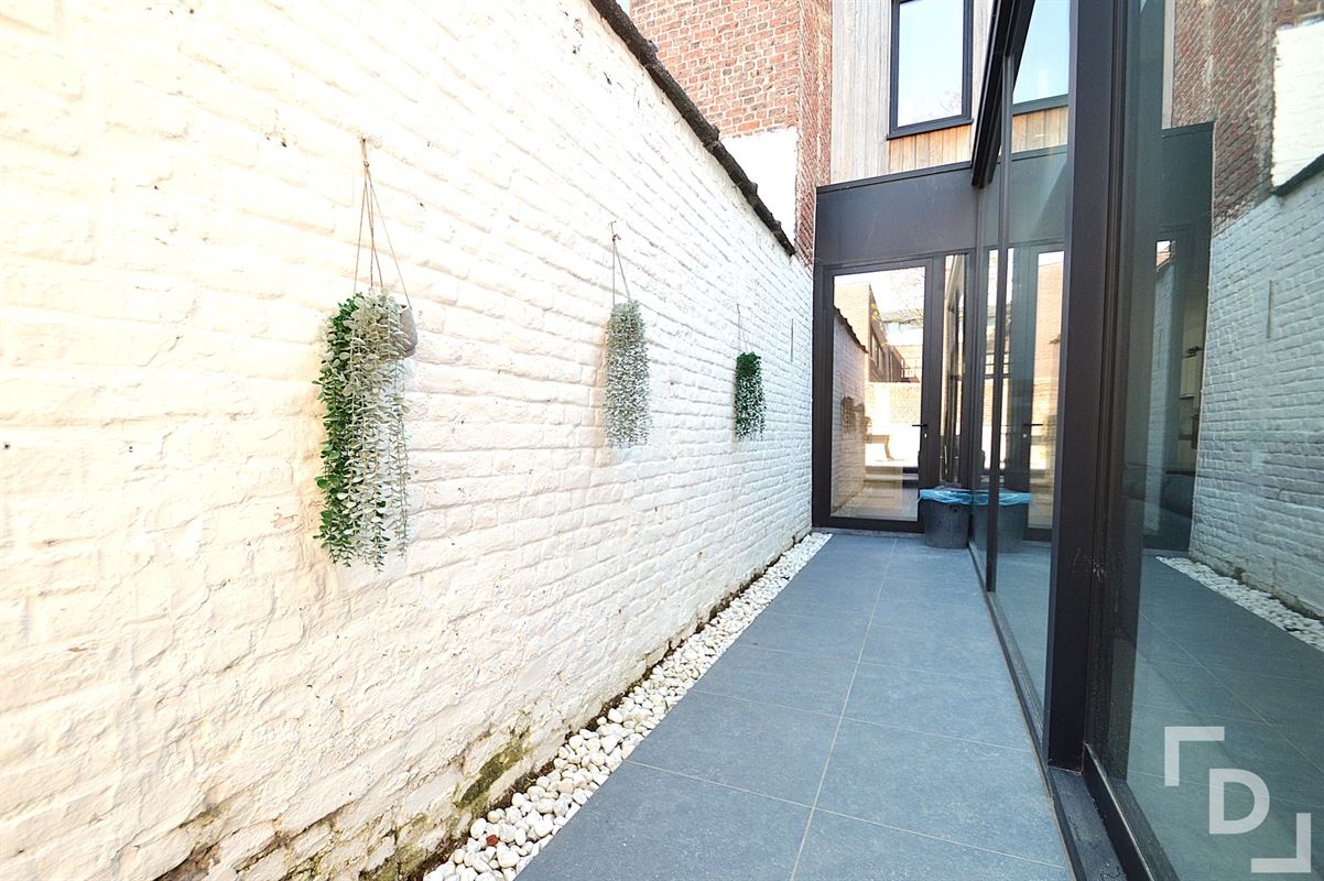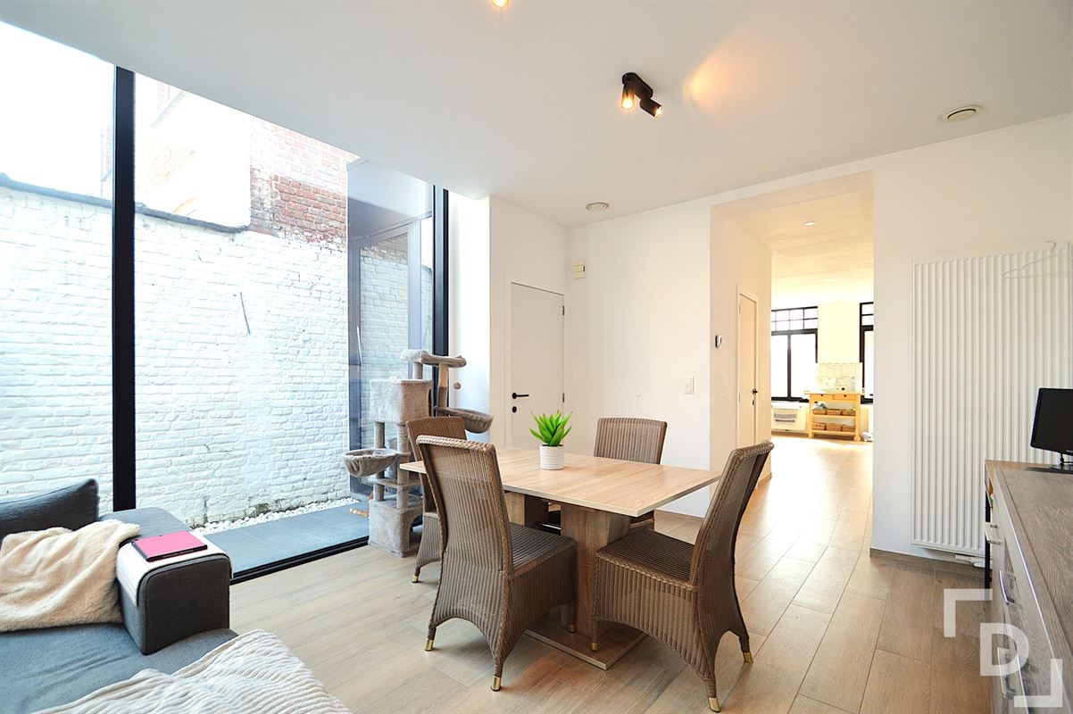 In het stadscentrum van Ieper vinden we deze karaktervolle en volledig gerenoveerde woning terug. Gelegen in het centrum en toch zeer bereikbaar door de nabijheid van het station en de vlotte verbindingswegen. Verder zijn alle nodige voorzieningen op wandel- en fietsafstand te bereiken, zoals: kleinhandel, grootwarenhuizen, diverse horeca-zaken, scholen, crèches, enz. Aan de voorzijde van het gebouw is er parkeermogelijkheid in een blauwe zone.De woning is in 2023 volledig gerenoveerd. Daarbij werd het economische en ecologische aspect niet uit het oog verloren, wat resulteert in een zeer energiezuinig pand. Binnenkomen doen we in de ruime inkomhal met gastentoilet. Aan de linkerkant hebben we hier meteen toegang tot de volledig geïnstalleerde nieuwbouwkeuken. Deze is uitgerust met een dubbele spoelbak, een vaatwasmachine, een keramische kookplaat met dampkap, een heteluchtoven en een koelkast. De keuken staat in onmiddellijke verbinding met de lichtrijke woonkamer. Voor we daar arriveren hebben we links eerst een koele berging en rechts nog een handige wasplaats. De ruime leefruimte geniet enorm veel lichtinval door de uitgestrekte glaswand die met een schuifraam open kan worden gemaakt. Eenmaal buiten komen we in de ruime stadstuin terecht, een unieketroef van deze woning. Achteraan houdt zich daar nog een zeer ruime tuinberging schuil.
