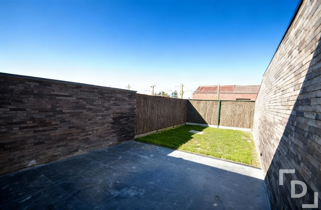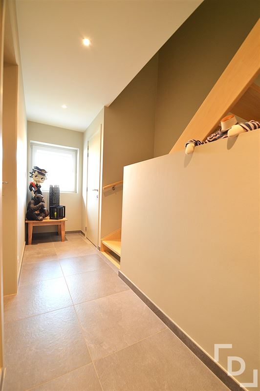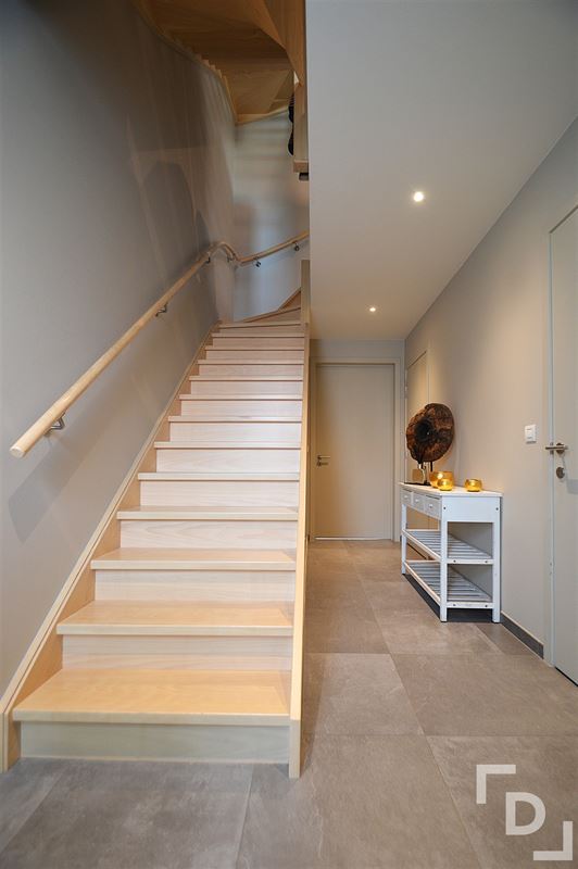 - GLV: inkom - apart toilet - garage - keukenberging - leefruimte met open keuken en toegang tot terras en tuin.