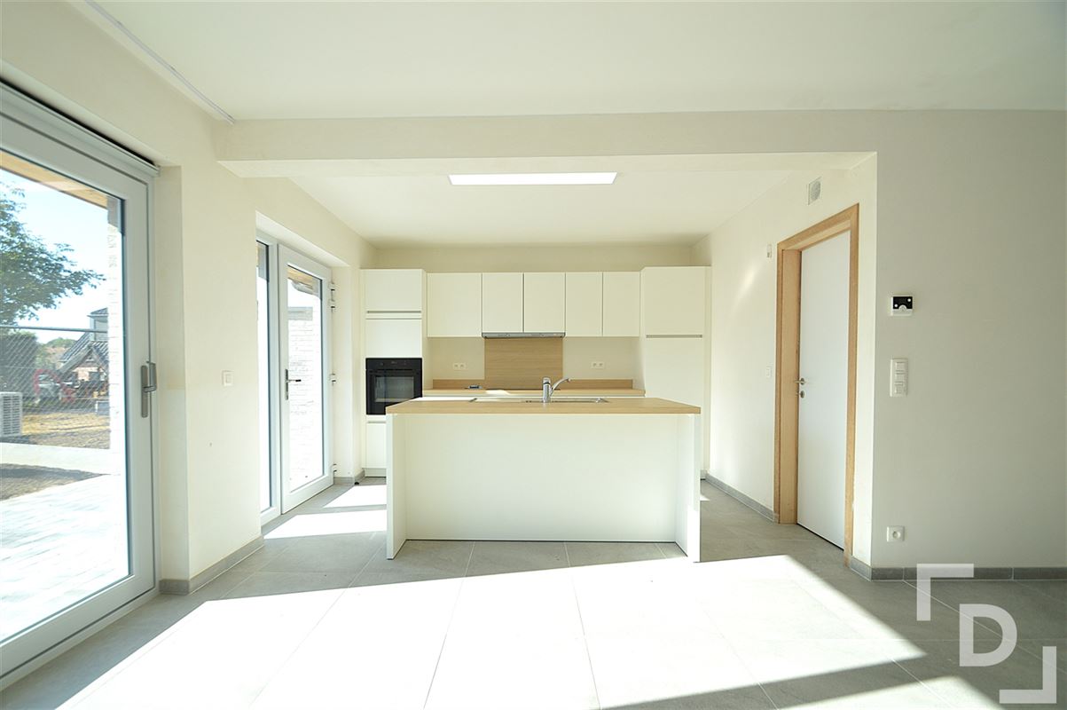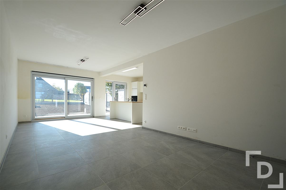 GLV: Inkom - apart toilet - leefruimte met open keuken voorzien van inductiekookplaat, vaatwas en frigo