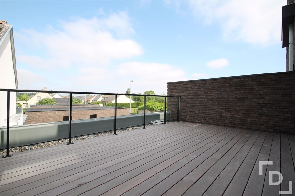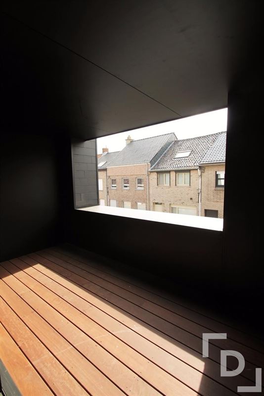 Achteraan het appartement ligt een tweede terras, dat uitkijkt op de achterliggende garages.