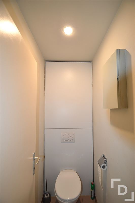 Bij het binnenkomen treft u een inkomhal met vestiaire en een apart toilet. De ruime slaapkamer (3,75 x 3,80 m) biedt voldoende plaats voor een comfortabel bed en kasten. De badkamer is praktisch ingericht met een wastafel in meubel, een douche en aansluitingen voor was- en droogmachine.