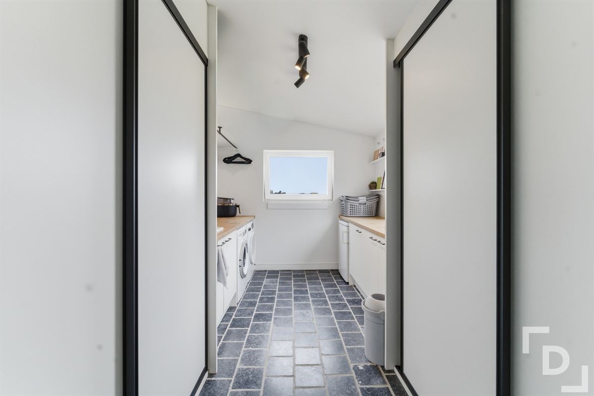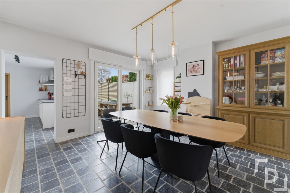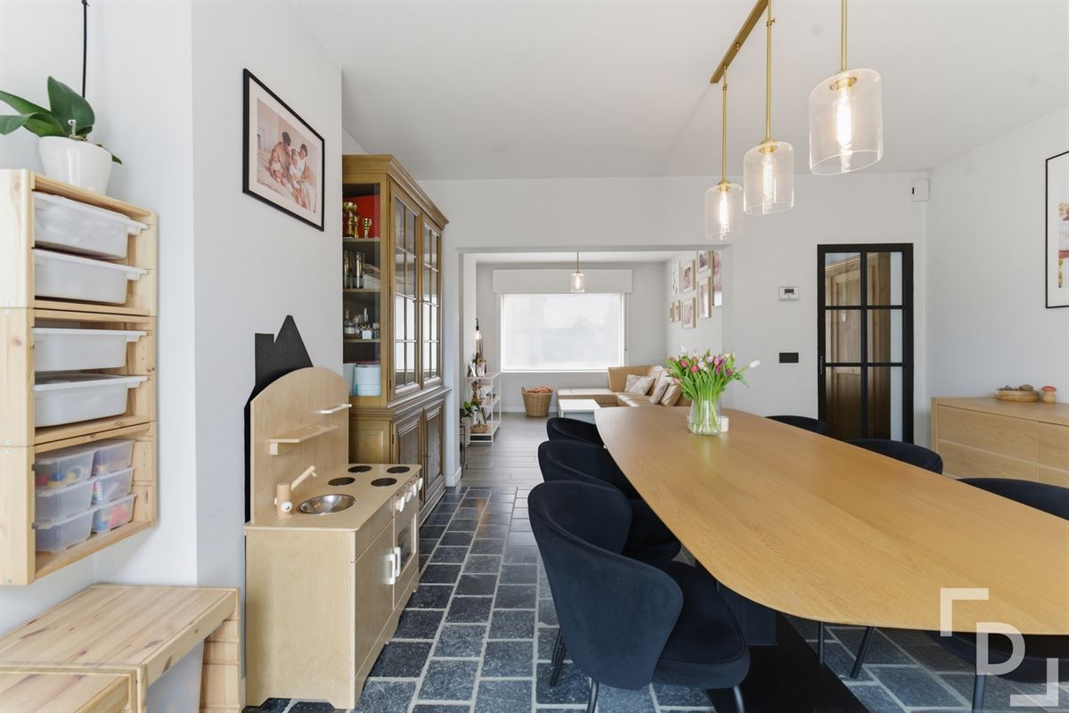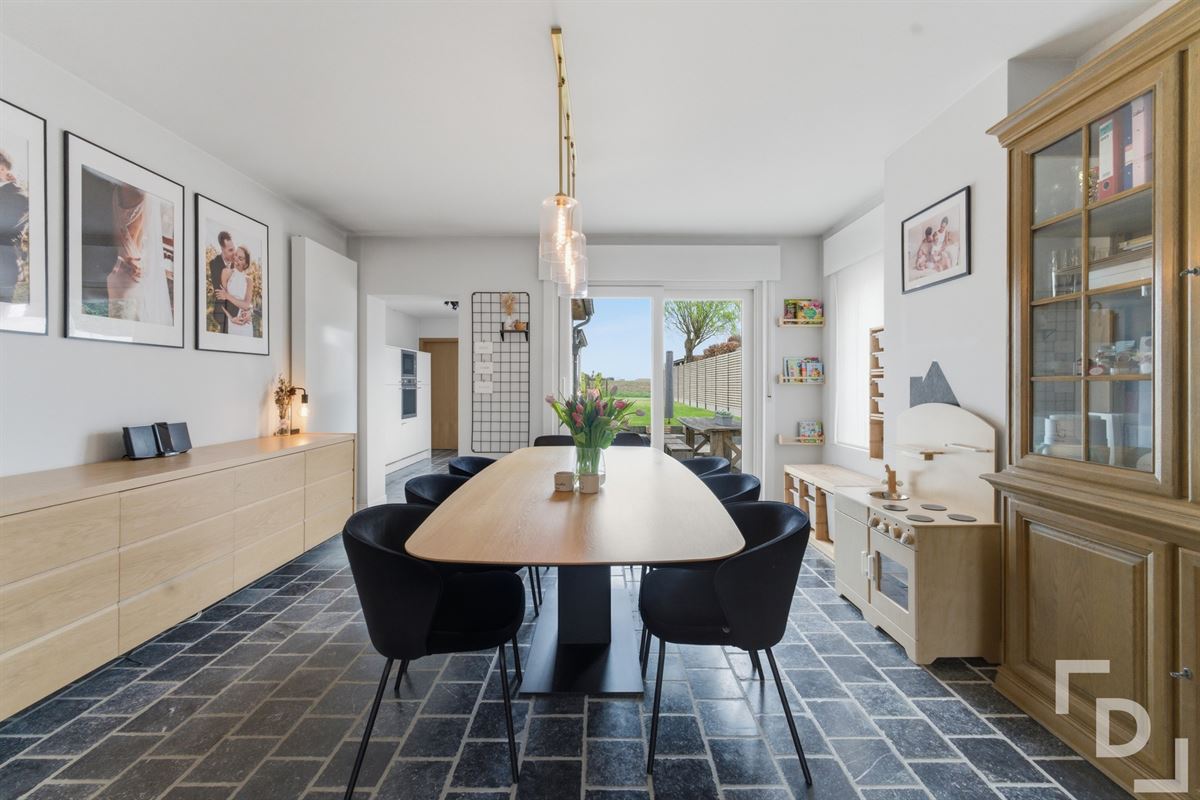 GLV: Inkomhal - ruime leefruimte verdeeld in eet- en zithoek - keuken met zicht op terras en tuin - wasruimte - apart toilet