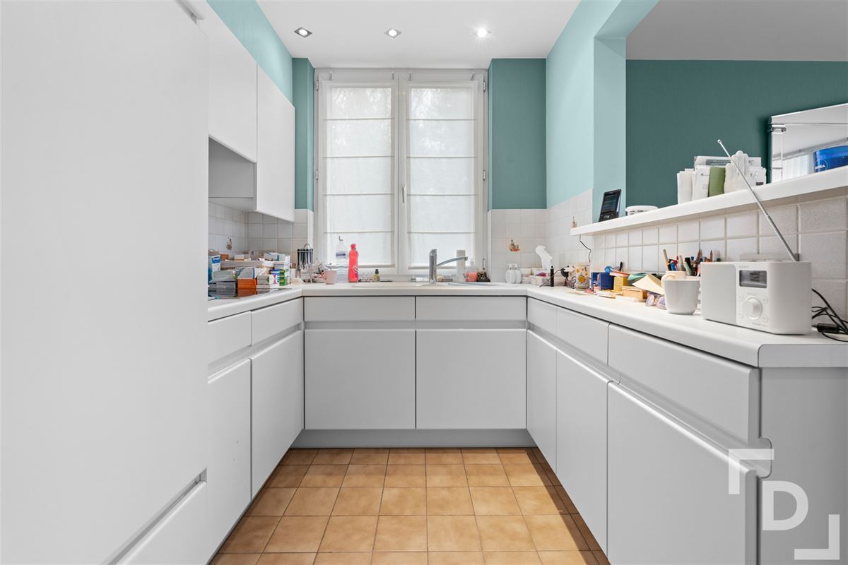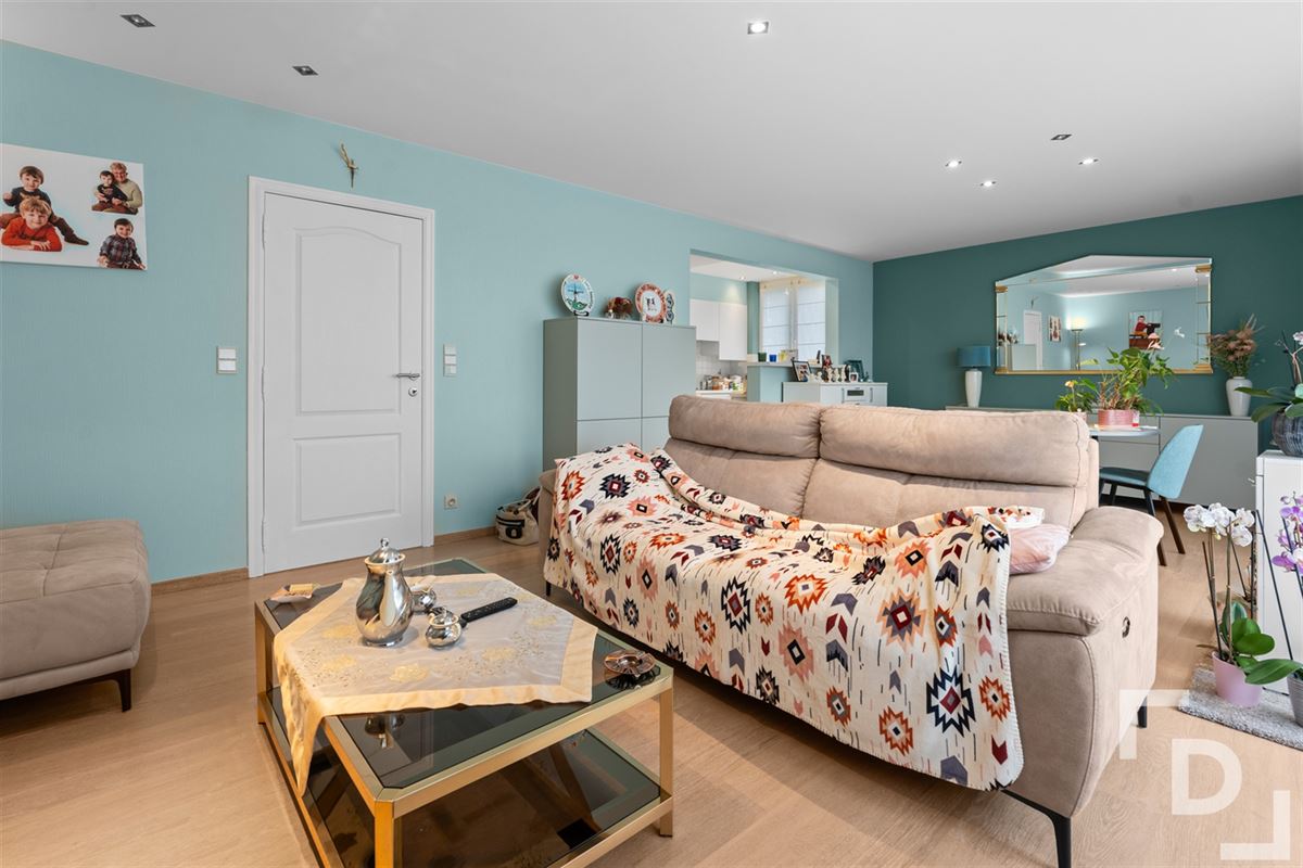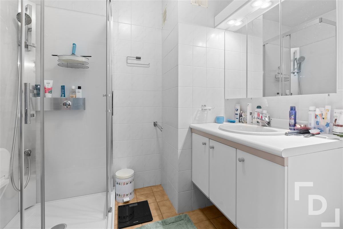 De keuken is volledig uitgerust met witte kasten en een praktische indeling, aangevuld met voldoende werk- en opbergruimte. De keuken geeft vervolgens uit op een aparte en ruime bergruimte. De badkamer is verzorgd en uitgerust met een douchecabine en een wastafelmeubel. In de centrale hal vinden we ook een apart toilet en een aparte bergruimte.