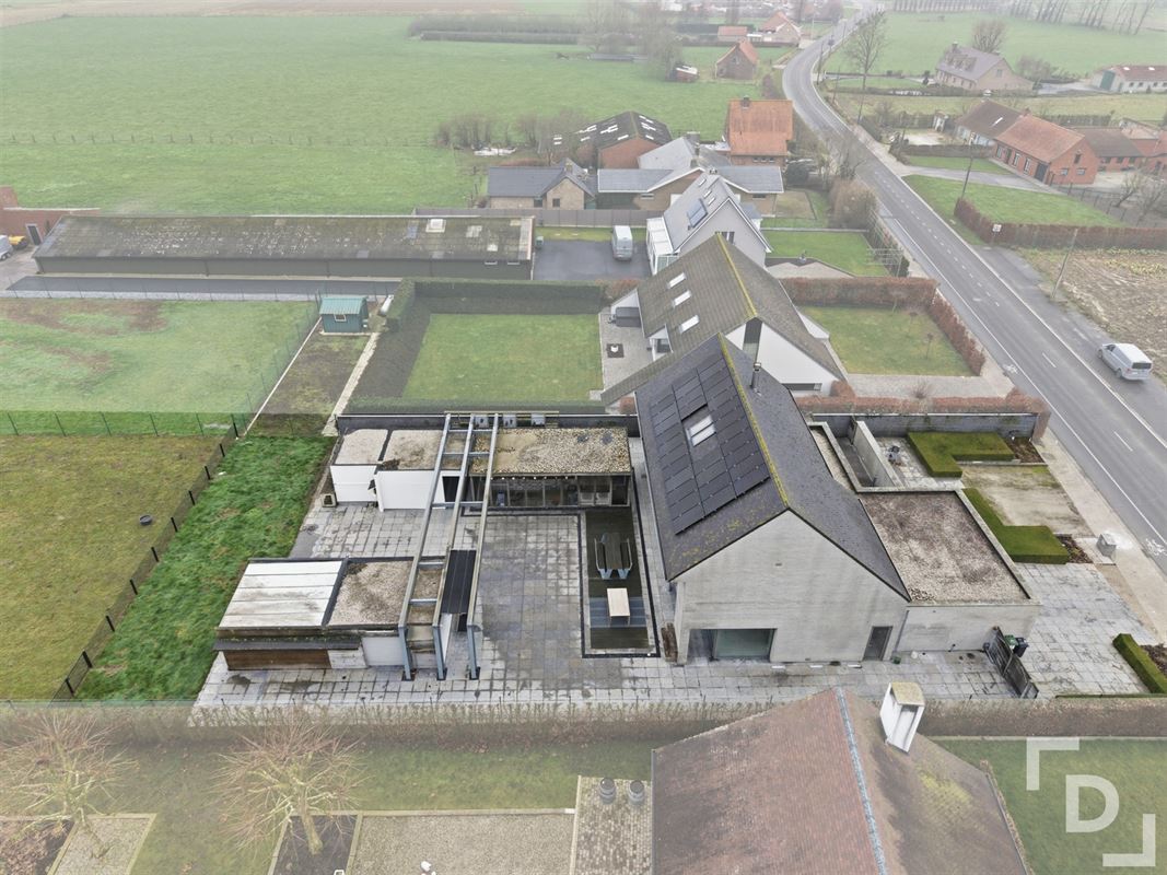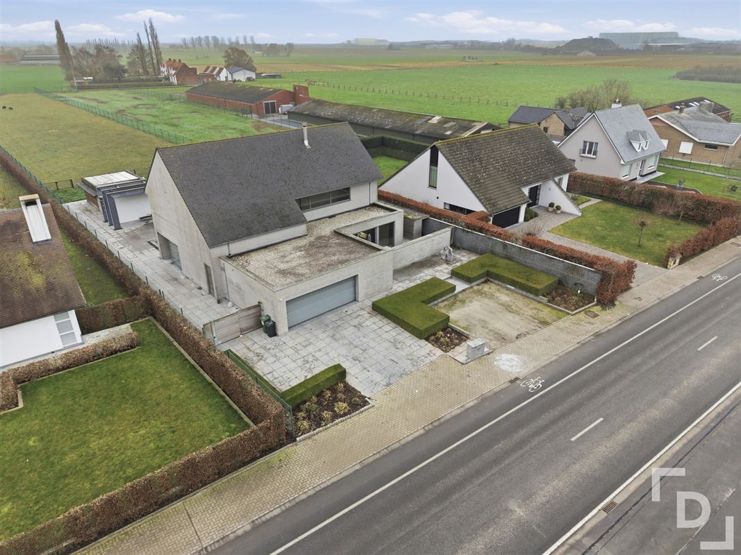 In de Langemarkseweg te Boezinge vinden we deze uitzonderlijke ruime en moderne woning. Dit architectonisch staaltje van vakmanschap biedt een perfecte combinatie van hedendaags comfort en ruime woonplezier op een indrukwekkend perceel van maar liefst 4287m².De woning beschikt over een totale bewoonbare oppervlakte van 396m². Meteen bij het binnenkomen worden we verwelkomt in een ruime hal die toegang geeft tot een ruime leefruimte verdeelt in een zithoek met ingemaakte en geautomatiseerde kasten, een eetruimte en naast de leefruimte vinden we de keuken voorzien van verschillende kasten en allerlei keukentoestellen van het merk 'Miele'. Vanuit de inkomhal en de leefruimte hebben we toegang tot een aparte bureauruimte, ook voorzien van ingemaakte en geautomatiseerde kasten. Vanuit de trap in de inkomhal komen op het eerste verdiep met een nachthal die toegang geeft tot 3 slaapkamers, waarvan één masterbedroom met ingemaakte dressing en een luxueuze badkamer met bad, inloopdouche en waselementen. De zolderruimte zal niet ongebruikt blijven en zal nog volledig ingericht worden tot ruime en moderne kamer. Tevens geeft de woning ook een liftkoker die de mogelijkheid om uw eigen huislift te laten installeren naar wens. De woning voorziet ook een enorme inpandige garage met alle technische voorzieningen.