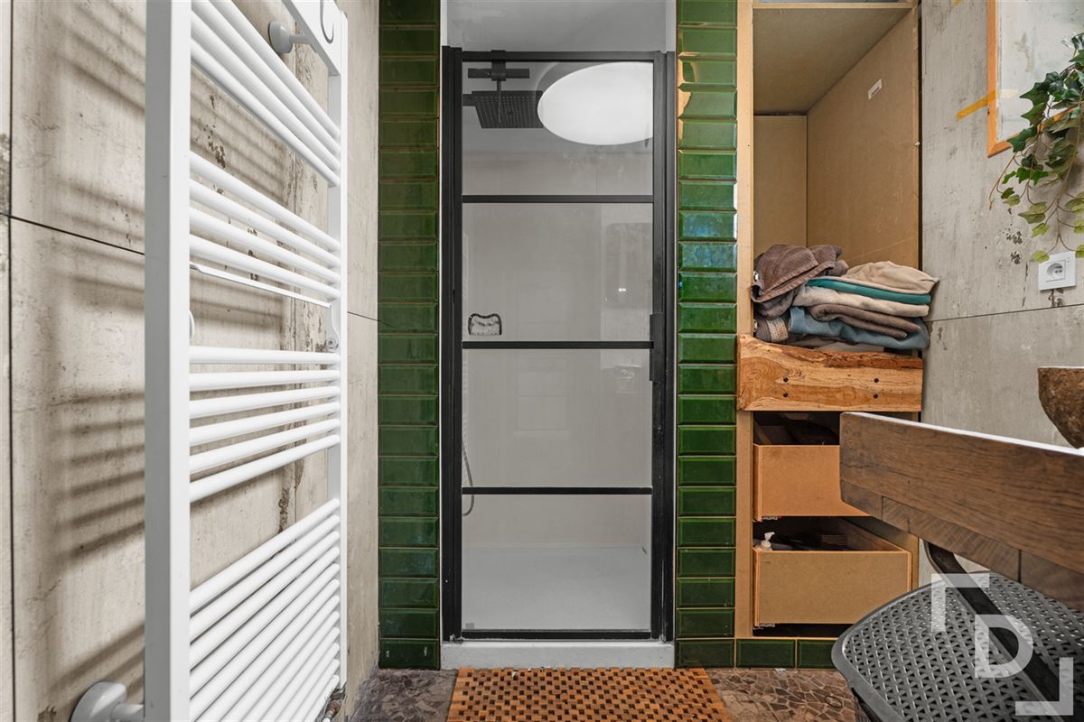 GLV: Inkom - apart toilet - ruime leefruimte - zeer moderne keuken voorzien van verschillende toestellen - bergruimte - badkamer met douche en lavabo - slaapkamer - inpandige garage