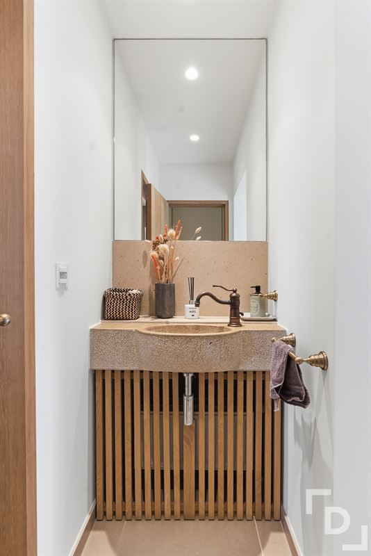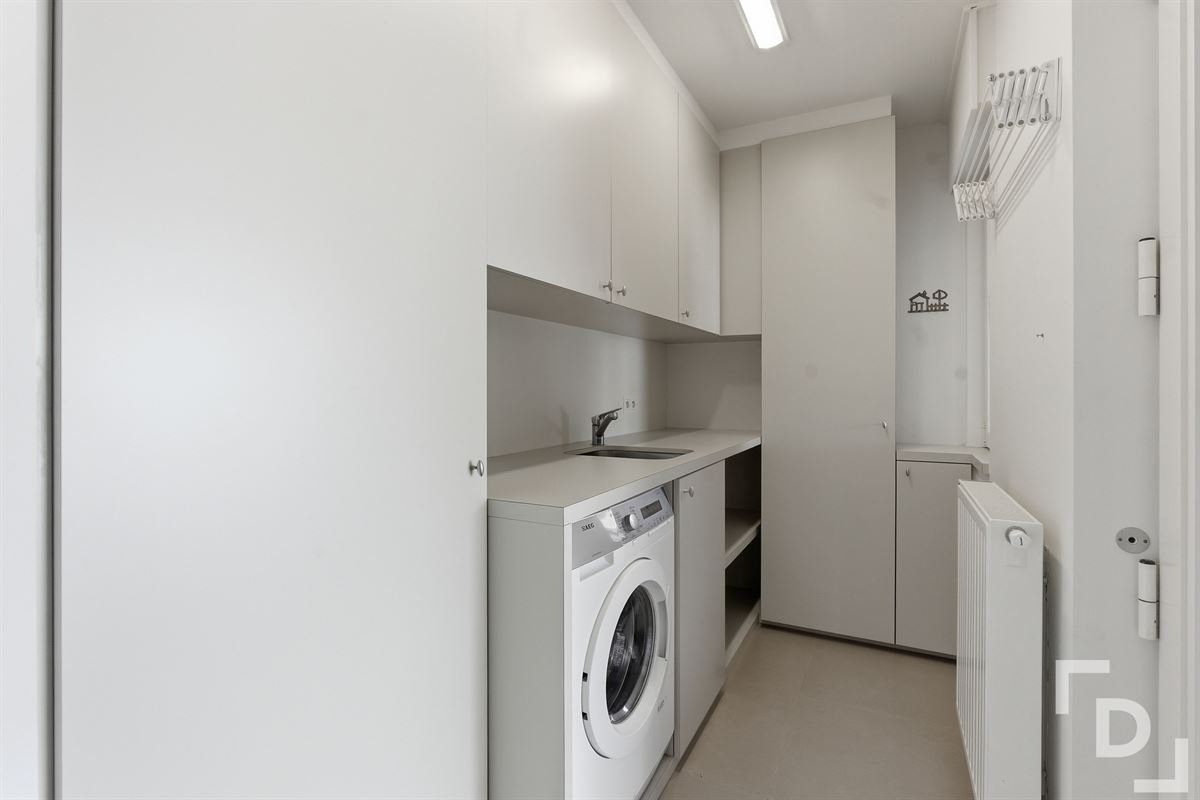 GLV: Inkom - apart toilet - leefruimte met gashaard - keuken voorzien met toestellen van merk AEG - hal - wasruimte - slaapkamer met ensuite badkamer
