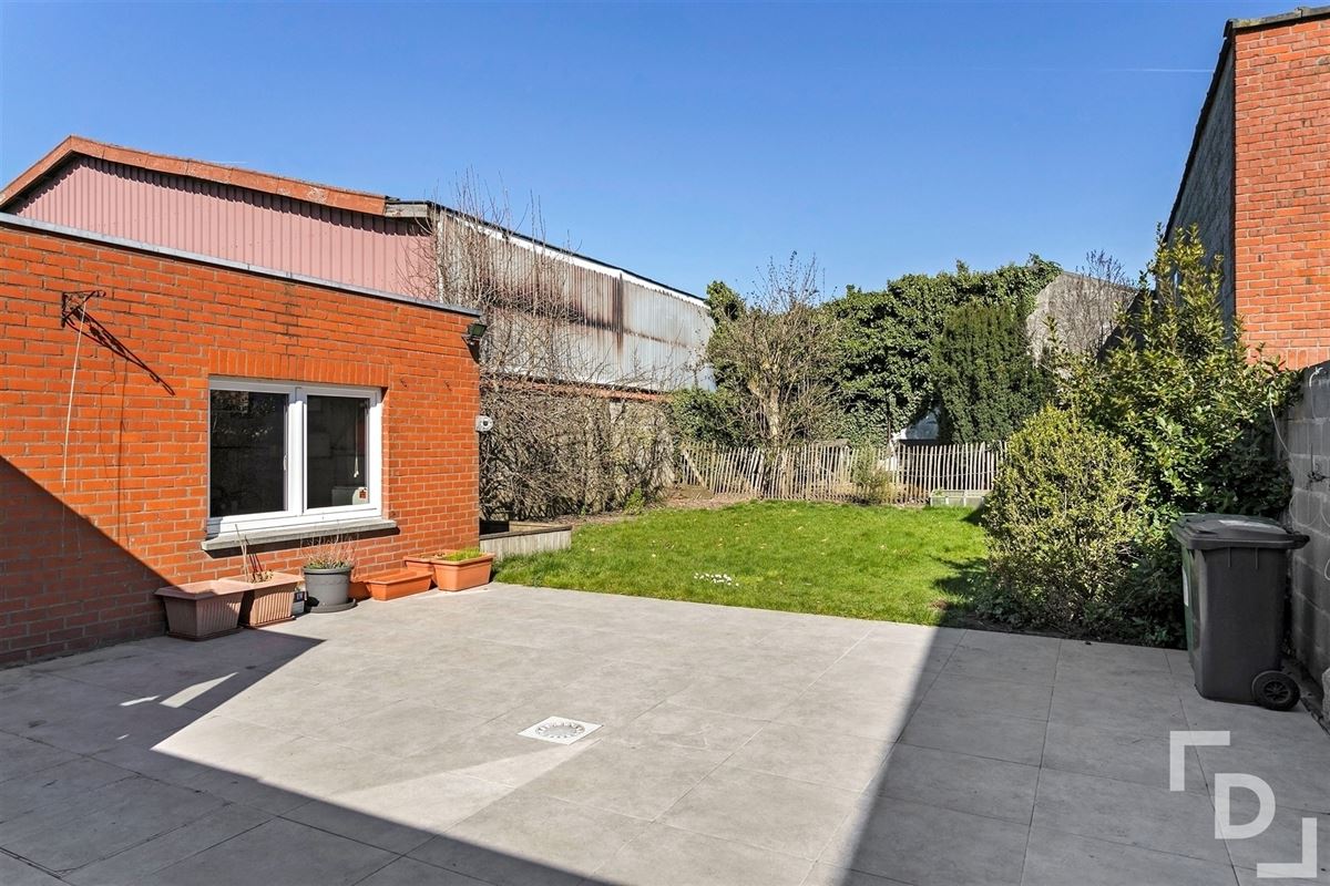 Buiten geniet je van een ruime tuin met een nieuw terras, ideaal om te ontspannen of gezellig te tafelen.