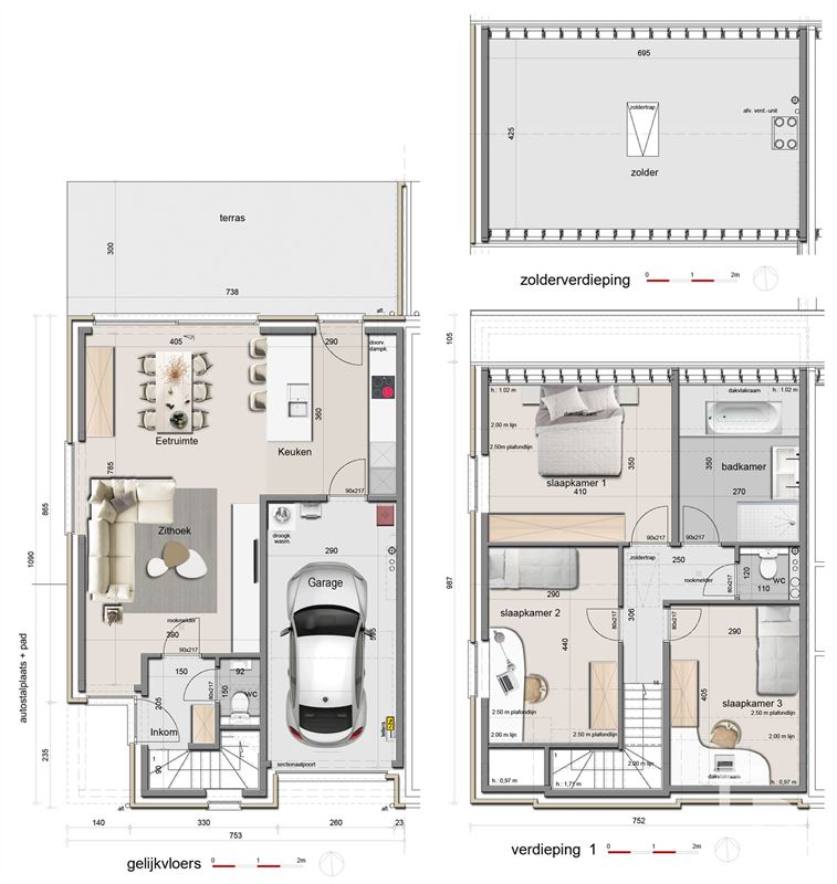 Lot 3 is de derde halfopen woning van het project, deze lichtrijke woning is halfopen waardoor het ook een autostaanplaats heeft naast de inpandige garage. Verder kenmerkt deze woning zich door een ruime tuin, een ruime garage, 3 ruime slaapkamers en een ruime zolder die zeer praktisch is als extra opbergruimte.Extra troeven voor deze woningen zijn: