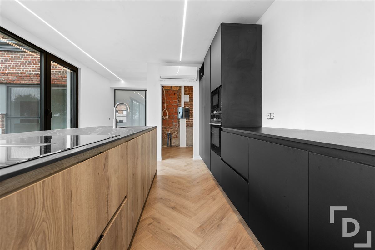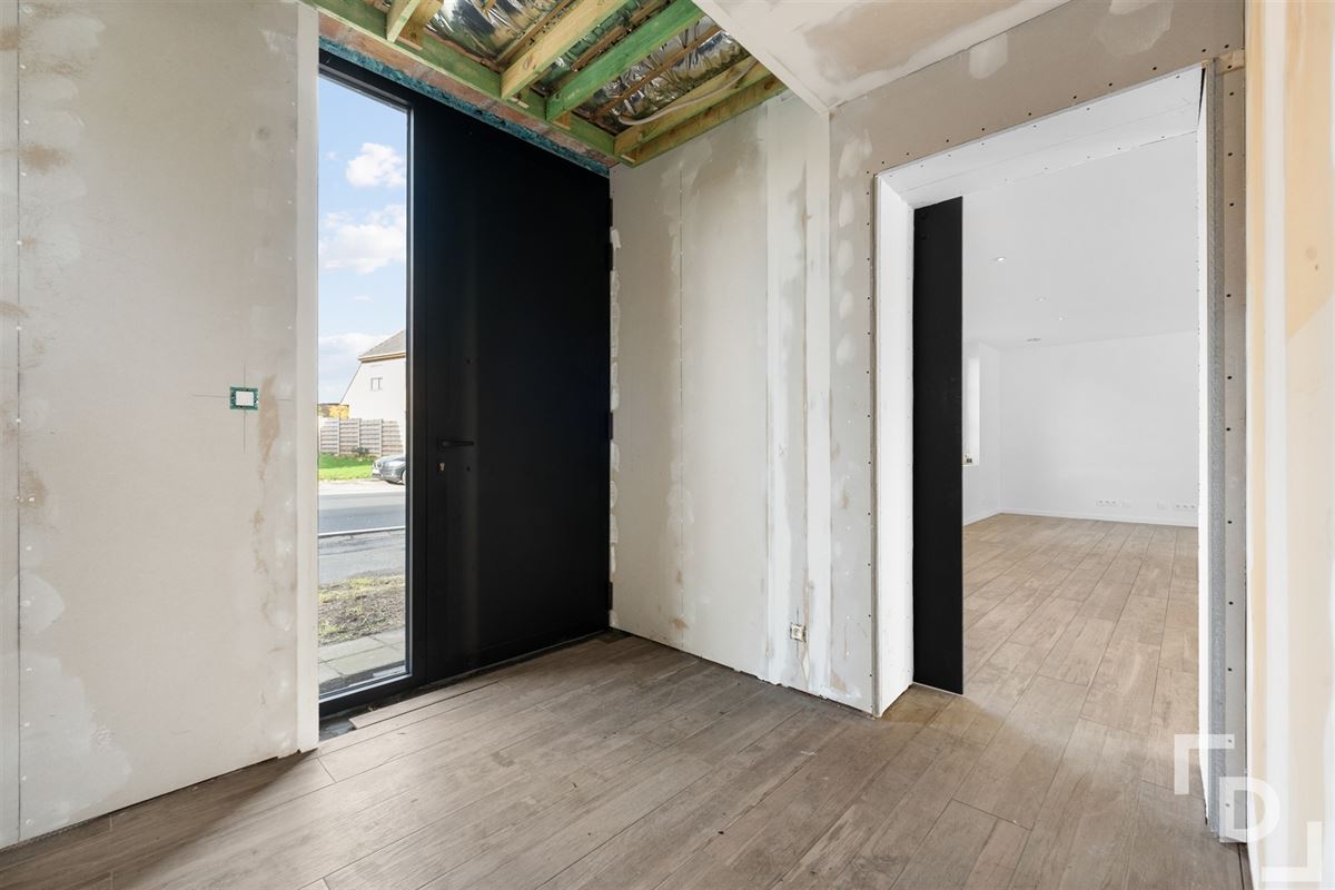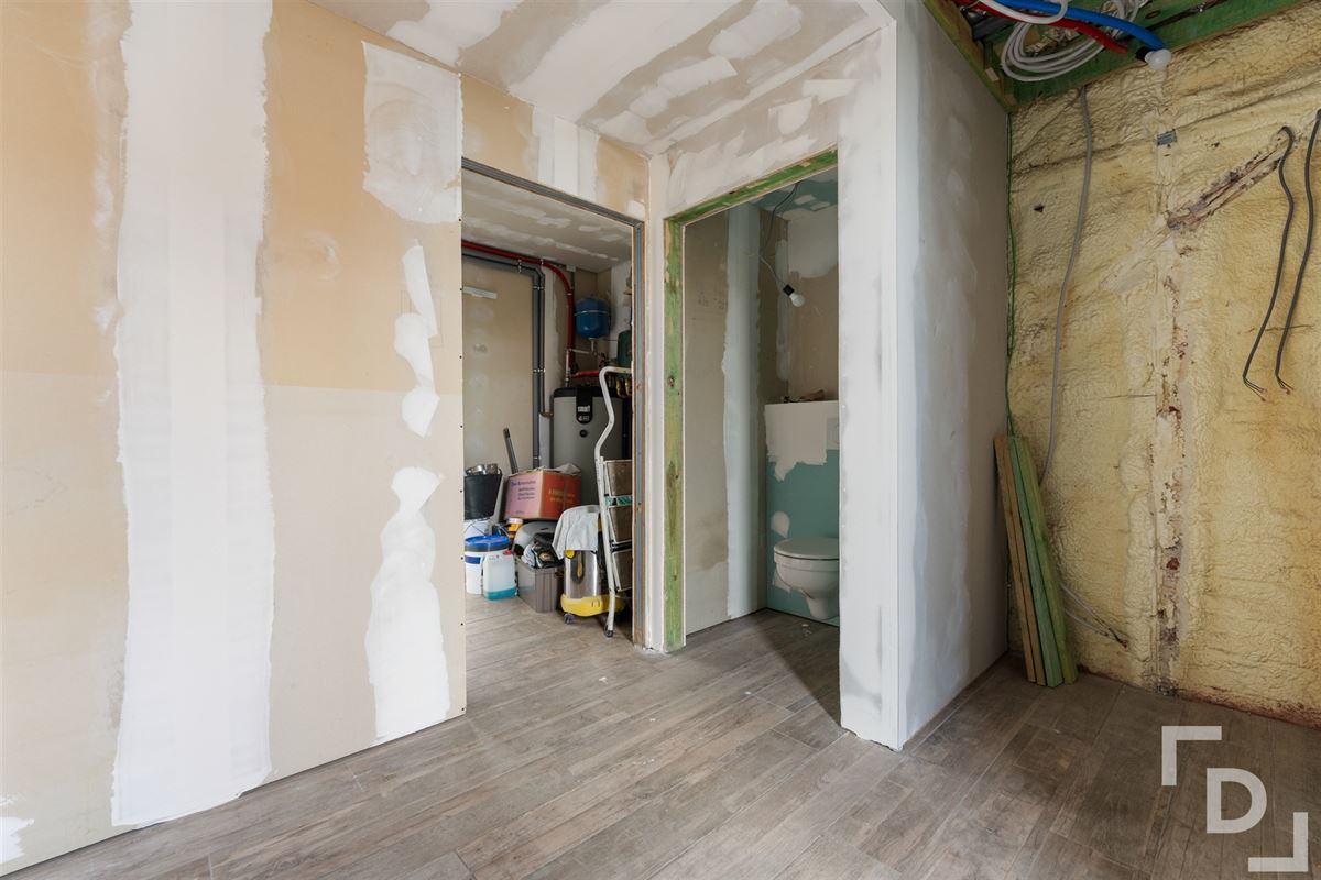 GLV: Inkom - leefruimte met open keuken - nieuwe uitbouw met moderne keuken gebouwd in 2022 - keukenberging - apart toilet - technische ruimte - hal die toegang geeft tot een verder af te werken badkamer en doorgangskamer tot de tuin - inpandige garage