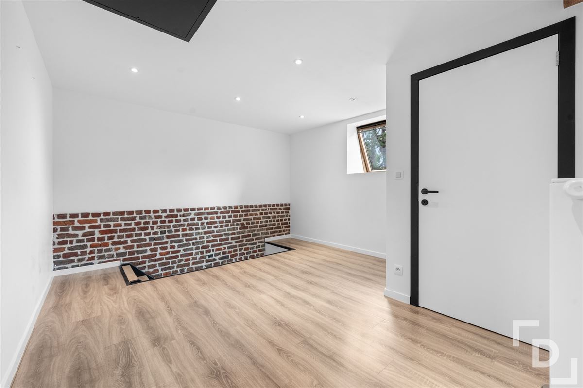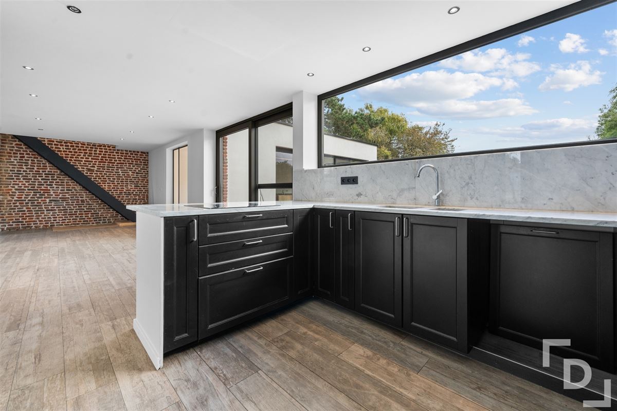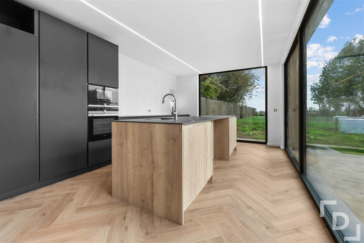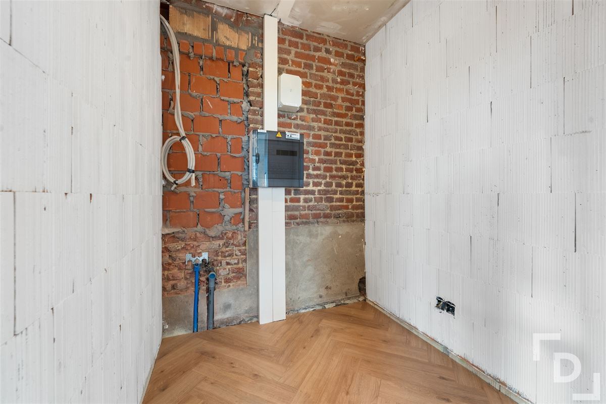 GLV: Inkom - leefruimte met open keuken - nieuwe uitbouw met moderne keuken gebouwd in 2022 - keukenberging - apart toilet - technische ruimte - hal die toegang geeft tot een verder af te werken badkamer en doorgangskamer tot de tuin - inpandige garage