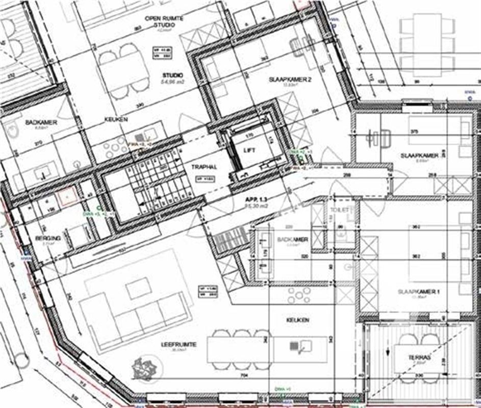 Dit appartement bevindt zich op de eerste verdieping op de hoek van de residentie met west-gericht terras (8,55m²).De bewoonbare oppervlakte van het appartement is 110,32m².