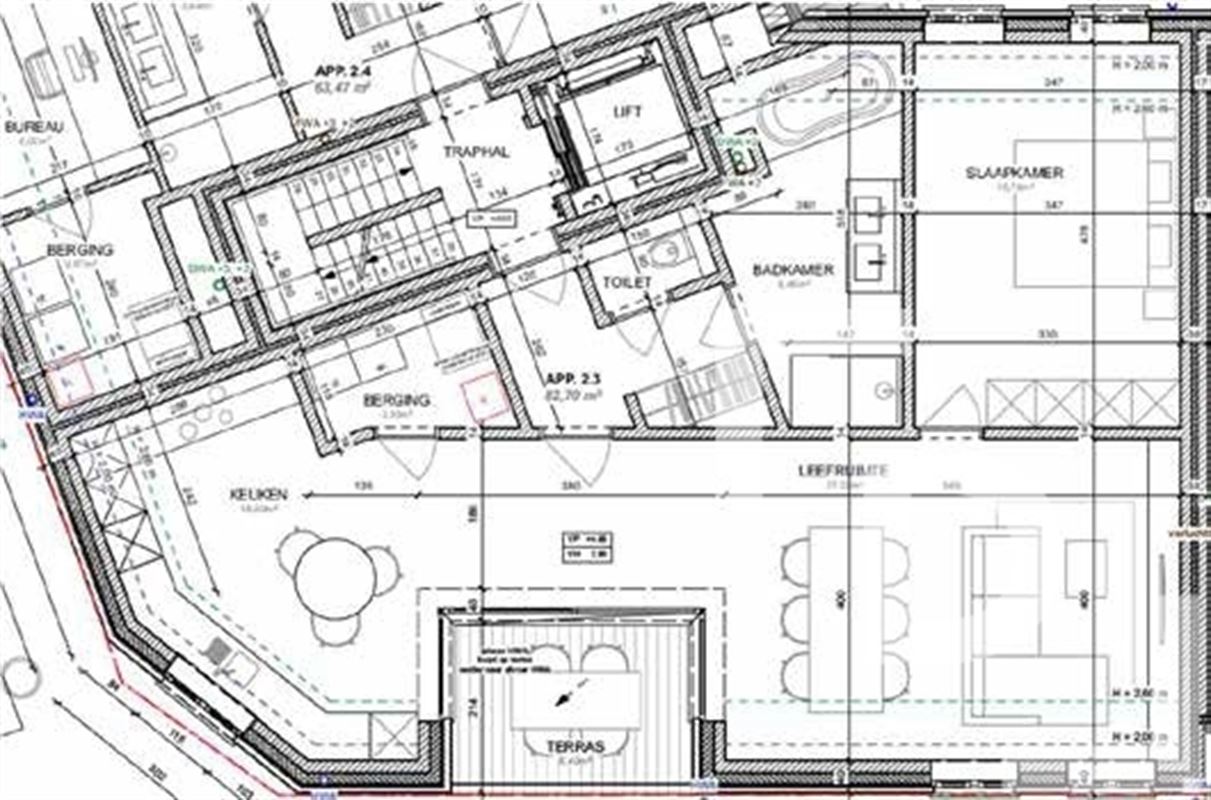 Dit appartement bevindt zich op de tweede verdieping op de hoek van de residentie met een oost-gericht terras (7,50m²).De bewoonbare oppervlakte van het appartement is 94,34m².
