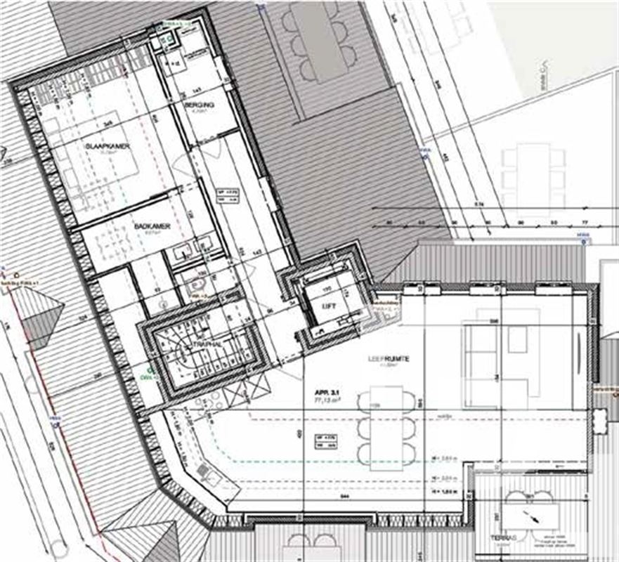 Dit appartement bevindt zich op de derde verdieping op de hoek van de residentie met zuid-oost gericht terras (7,62m²).De bewoonbare oppervlakte van het appartement is 90,50m².